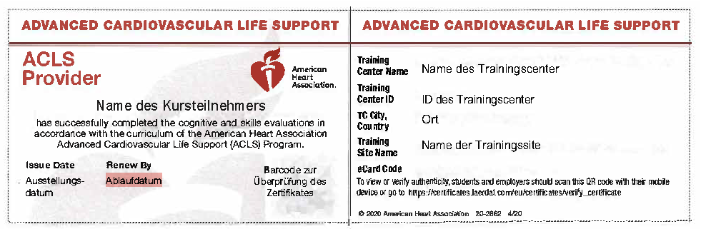 ⚠️ Wichtiger Hinweis: Eine Teilnahme am AHA-ACLS-Refresher-Kurs ist nur bei Vorliegen einer nicht abgelaufenen AHA-ACLS-Provider Card möglich: